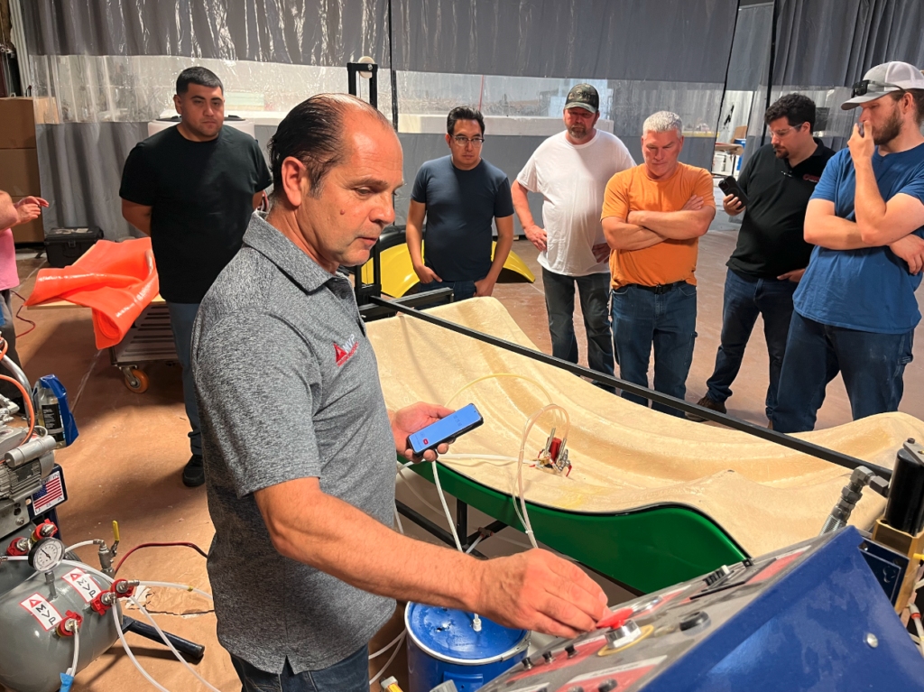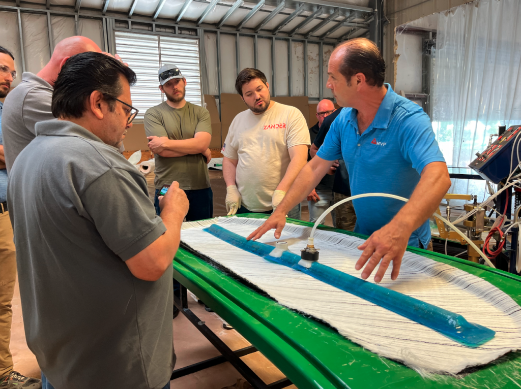 Over the course of two and a half days, participants engaged in a comprehensive instruction of new closed mold technologies. The intentionally small group size ensured that each attendee received personalized guidance and ample opportunity for hands-on practice. The training covered several key processes: